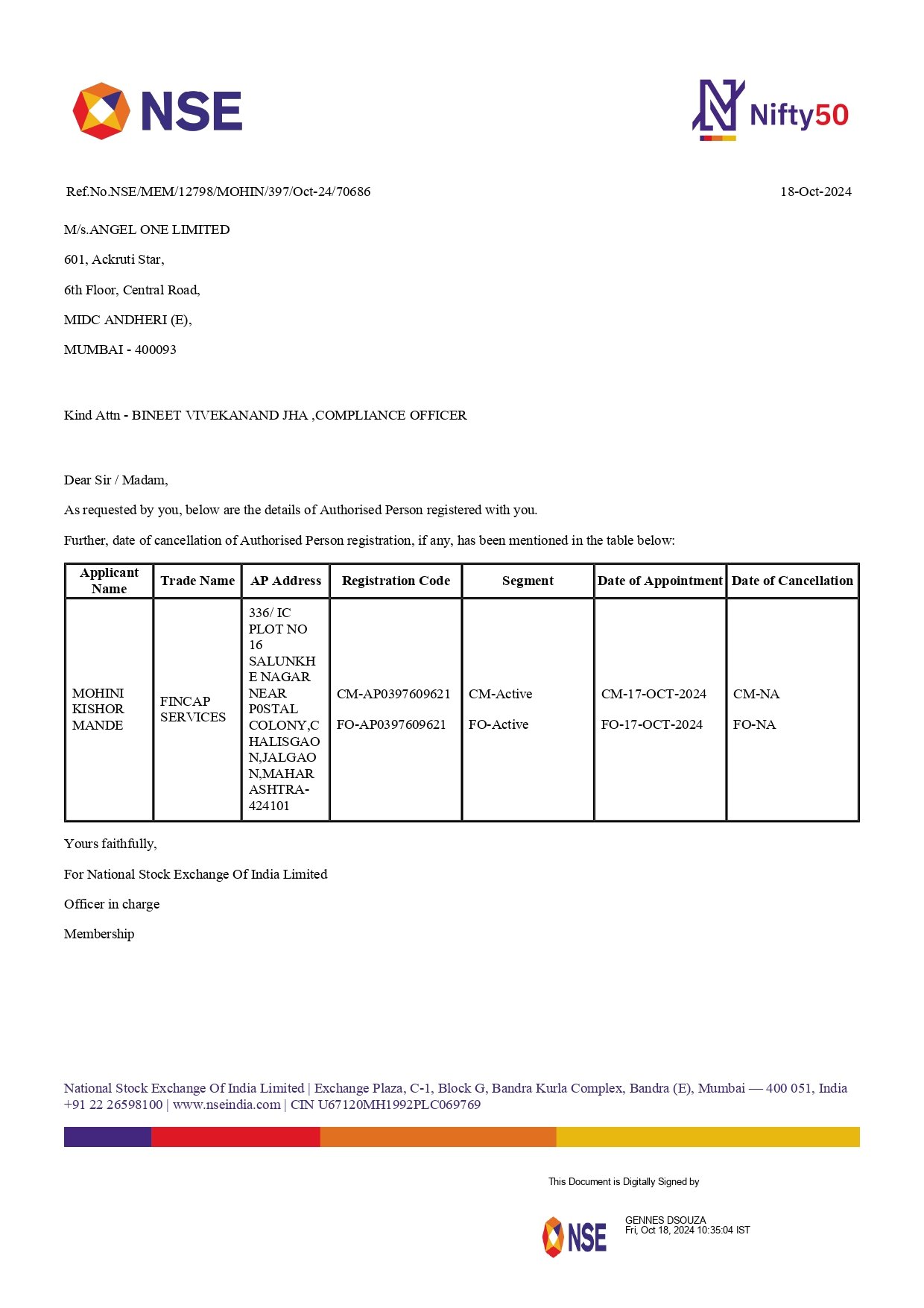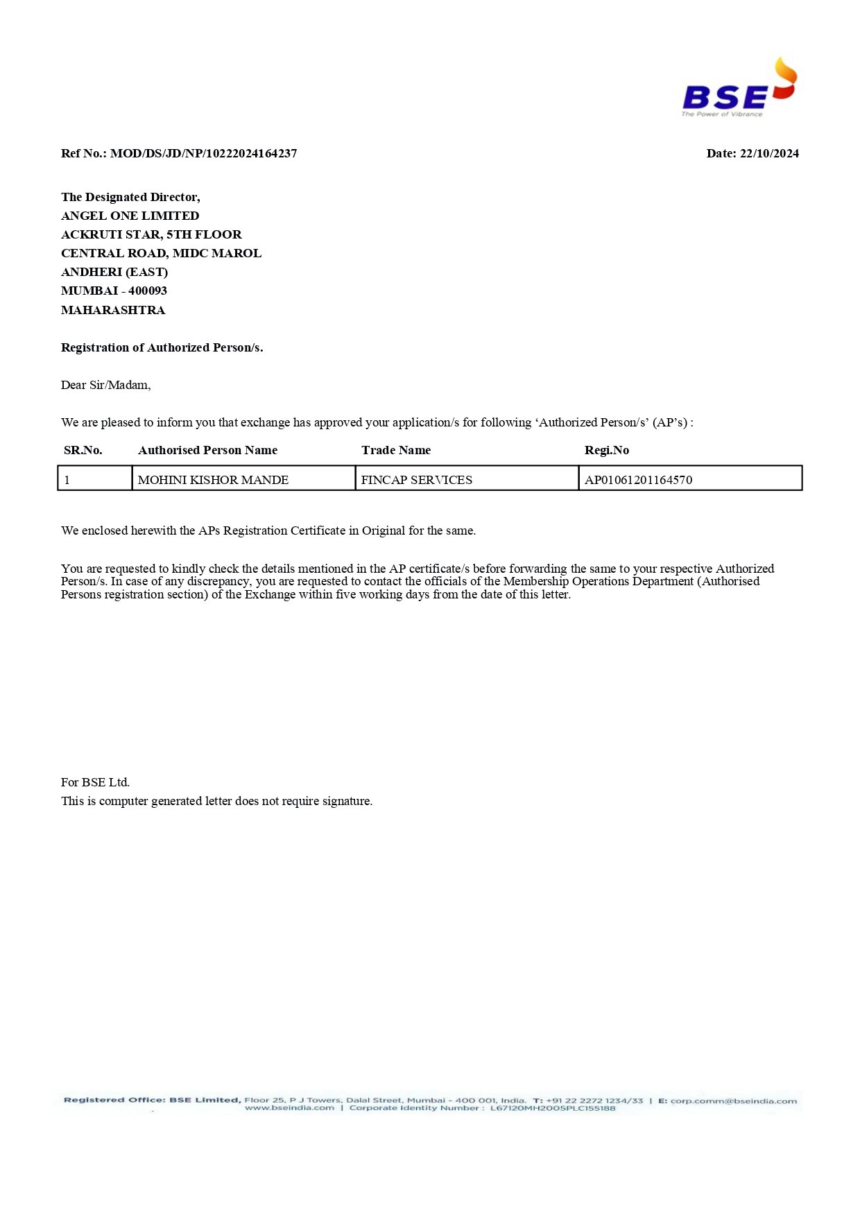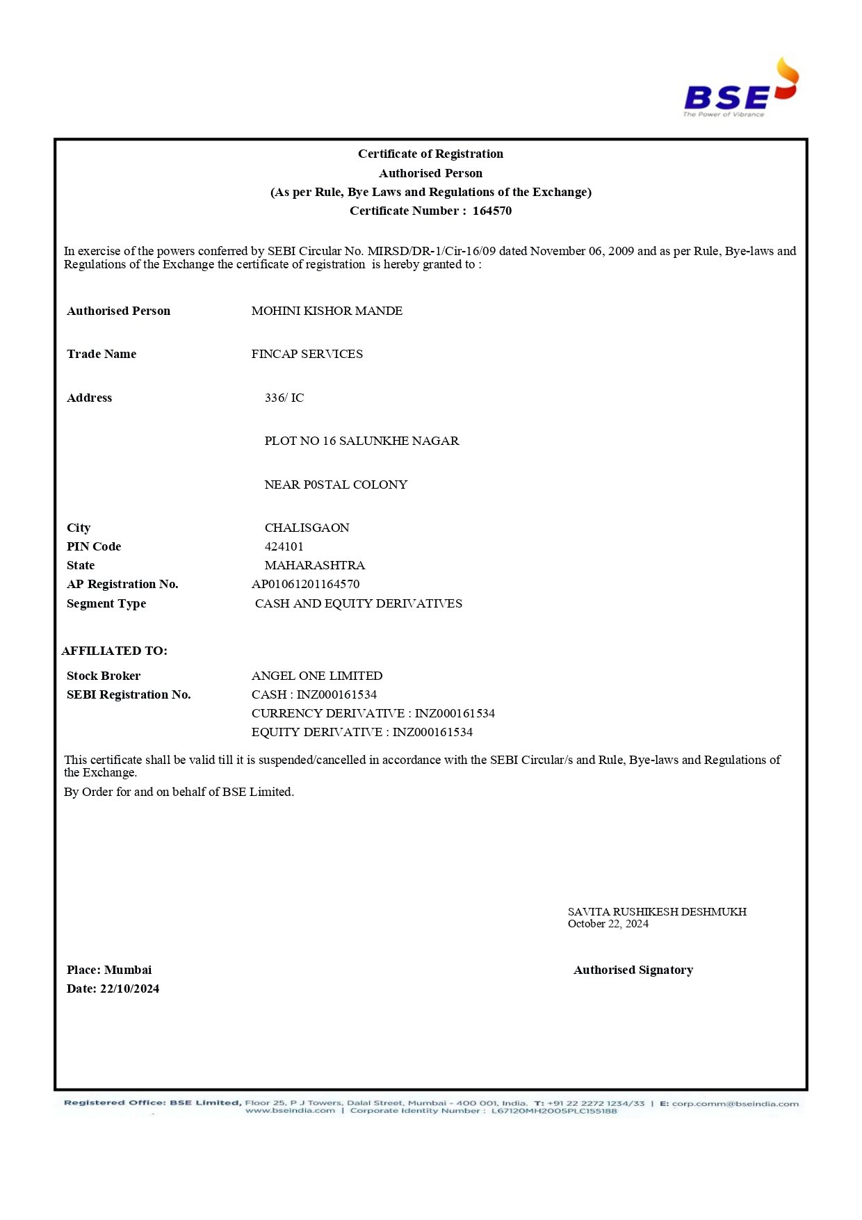 Fincap Services is an authorised Angel One Channel Partner, based in Chalisgaon, Maharashtra, offering reliable stock broking support and investment guidance with a focus on transparency and investor awareness.